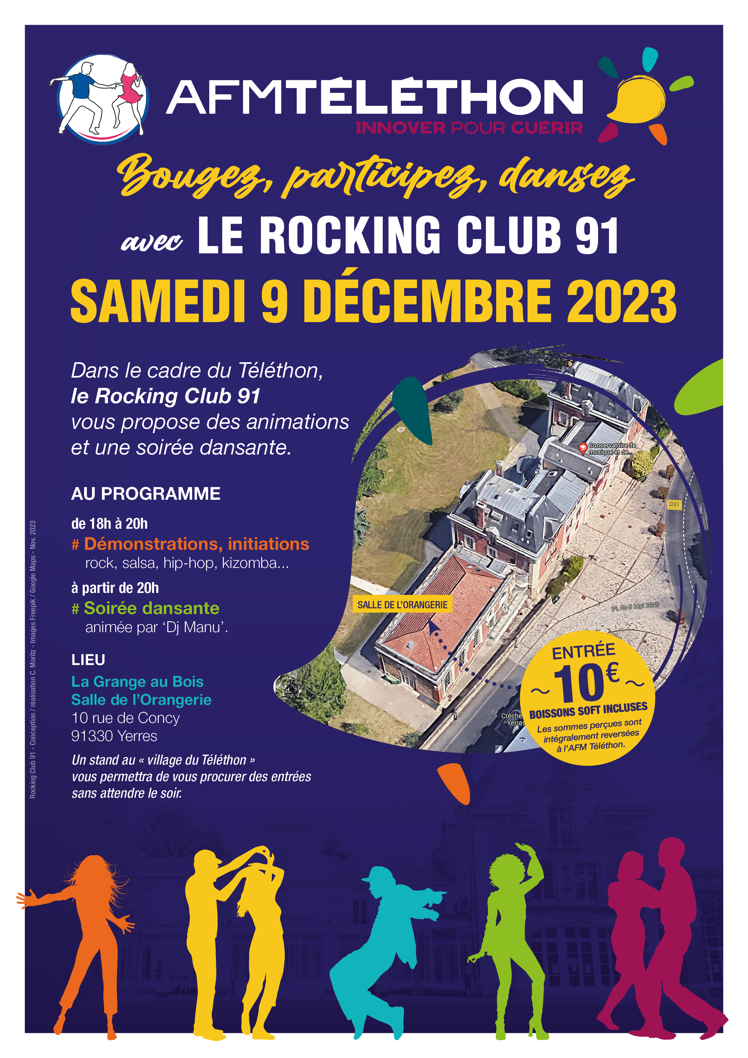 Le Rocking Club 91 organise une soirée multi-danses le 9 décembre 2023 au profit du Téléthon. Elle se déroulera, salle de l’Orangerie de la Grange au Bois, à Yerres.