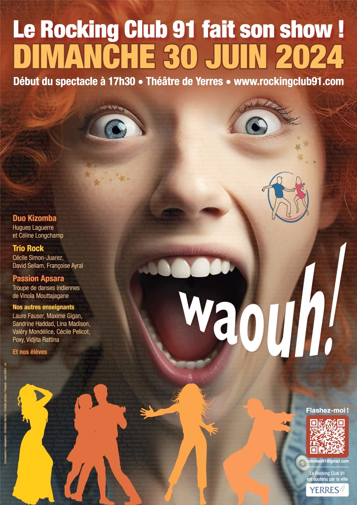 Le Spectacle de fin de saison du Rocking Club 91 se déroulera le 30 juin 2024, au théâtre de Yerres (rue Marc Sangnier), à partir de 17h30.